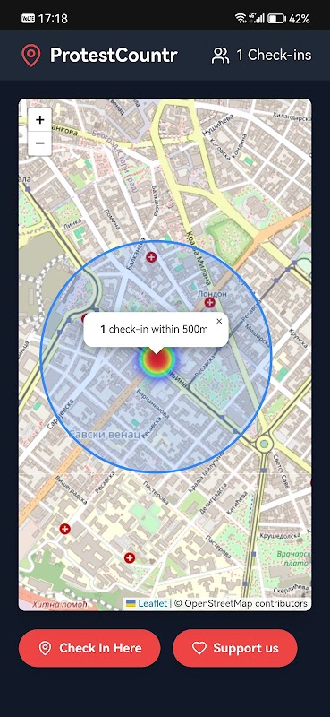 -نقشه حرارتی زنده: یک نقشه حرارتی پویا را روی نقشه ببینید که مناطقی با تراکم مشارکتکنندگان بالا را نشان میدهد. با بررسی افراد بیشتر، رشد جمعیت را در زمان واقعی تماشا کنید و درک بصری از دامنه اعتراض به شما میدهد.