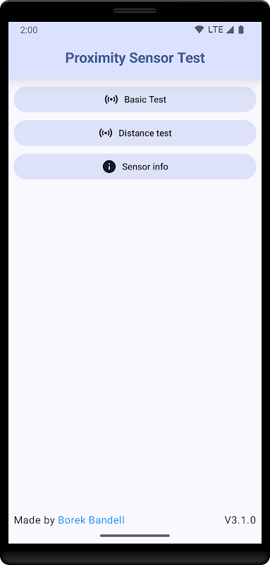 تست فاصله: مقدار دقیق فاصله را که حسگر مجاورتی شما حس می کند، دریافت کنید. لطفا توجه داشته باشید که تنها تعداد کمی از تلفن های هوشمند قادر به انجام این کار هستند! اکثر تلفن ها فقط مقدار فاصله ثابت را نشان می دهند.