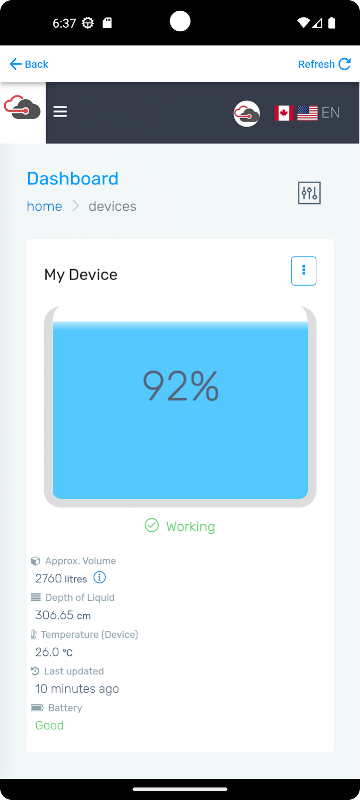 برای نظارت بر سطوح مخزن خود (PTLevel)، هشدارهای راه اندازی، مشاهده تاریخچه سطح، راه اندازی دستگاه های جدید و موارد دیگر در کف دست خود، به حساب PTDevices خود دسترسی پیدا کنید!