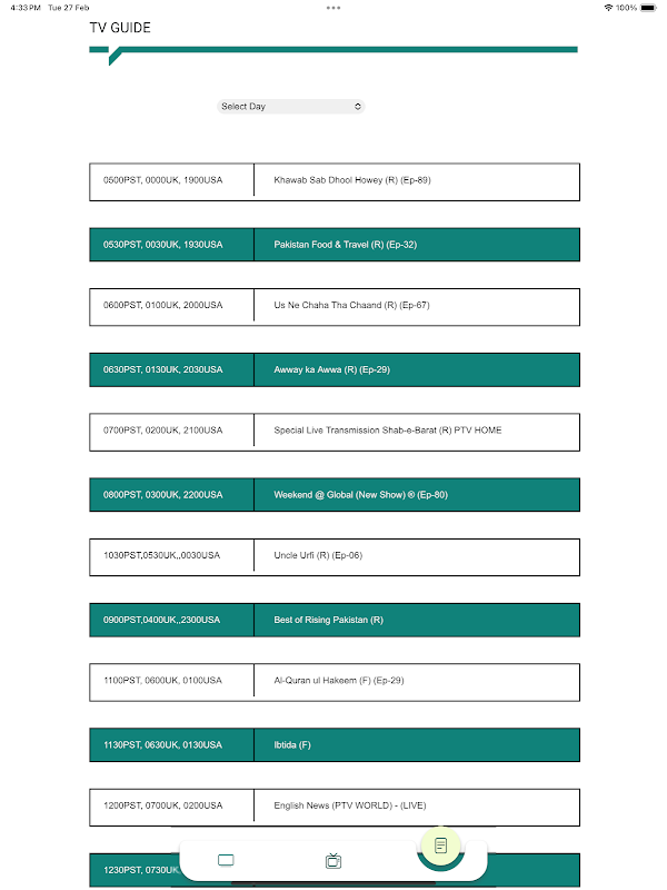 PTV GLOBAL یک کانال تلویزیونی کابلی و ماهواره ای متعلق به شرکت تلویزیون پاکستان است که در سراسر کشور و همچنین در اروپا و ایالات متحده پخش می شود. برنامه های انتخابی آن را از PTV Home، PTV National، PTV News و دیگر شبکه های PTV پخش می کند.