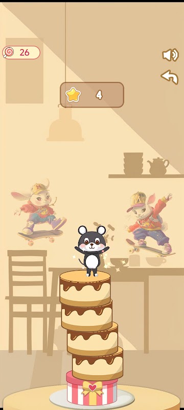 اهداف بازی: بازیکنان باید کیک ها را یکی یکی روی هم بچینند تا یک برج کیک بلند و پایدار بسازند. در طول فرآیند انباشتگی، آنها باید از فروریختن برج کیک جلوگیری کنند. هرچه لایه های بیشتری با موفقیت روی هم چیده شوند، امتیاز بالاتری خواهد داشت.