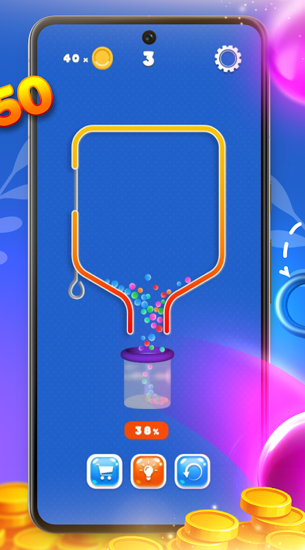 Pull Plins challenges you with a variety of obstacles: angled tubes that funnel spheres unpredictably, rotating loops that slow the flow, and pinch points that risk spilling precious cargo. With each successful level in Pull Plins, you’ll earn coins you can spend on helpful hints or unlock fresh level packs with new geometries and tougher puzzles.