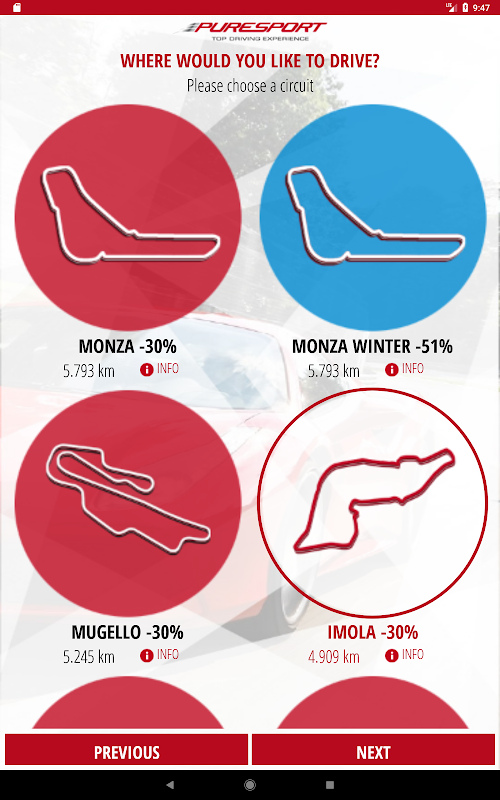 شما می توانید از بهترین Puresport ماشین تور را انتخاب نمایید پارک، یا سعی کنید یک تجربه مسابقه واقعی با اتومبیل فرمول یا نمونه های اولیه. را انتخاب کنید از مدارهای مهم ترین ایتالیایی، از جمله Monza و Vairano (Puresport منحصر به فرد مطلق)، اما ایمولا، ها Mugello، Vallelunga، Misano، کرمونا و Adria از.