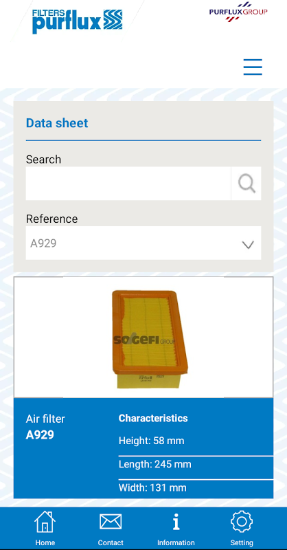 برنامه Purflux شما را به طیف گسترده ای از فیلترها PURFLUX دسترسی داشته باشید.