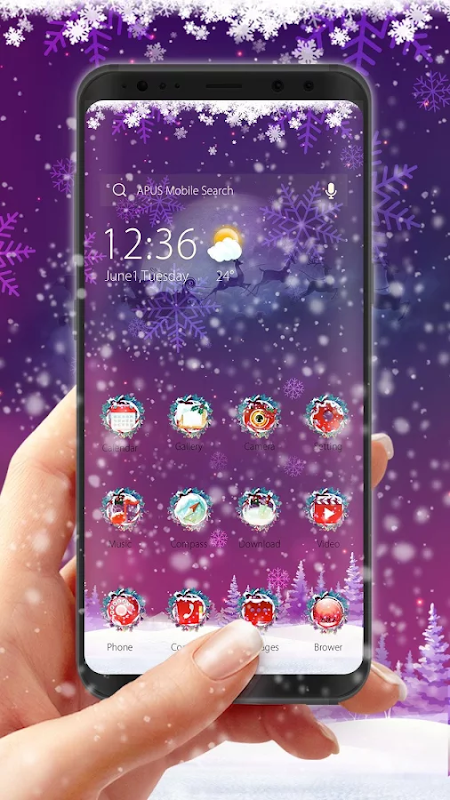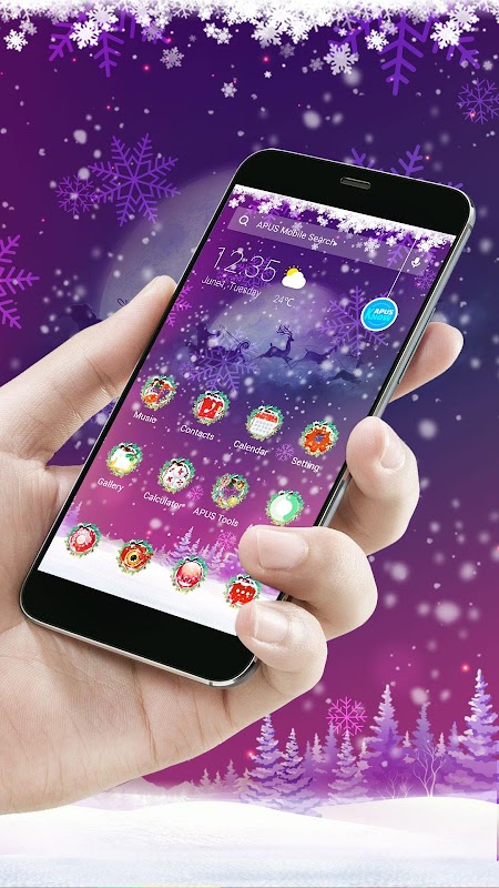 1. Purple Dream Christmas- APUS Launcher Free Theme is free, but only compatible with APUS Launcher. If you want to apply it, please install APUS Launcher on your Android phone. Or download new theme and APUS Launcher. When you install APUS Launcher, there are variety of themes in APUS theme & wallpaper shop, such as phonex, lovely unicorn, pink diamond mickey, Red heart, luxury, gold, business, black, simple, magic, comic, football, basketball, cricket, Valentine's Day, New Year, Halloween, Christmas, cute cat and dog, butterfly, dawn theme. Install APUS launcher to enjoy more themes.