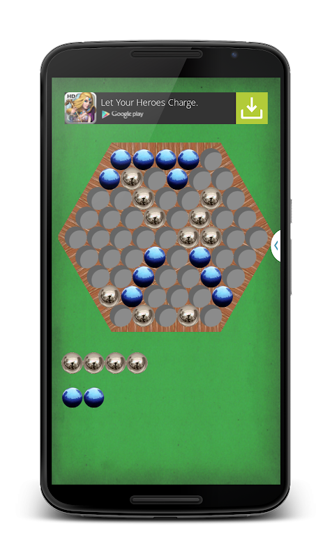 A player can PUSH BACK their opponent′s marbles which are in an adjacent space to their own with an in-line move only. They can only PUSH BACK if the pushing line has more marbles than the pushed line (three can PUSH two or one; two can PUSH one). Marbles must be pushed into an open space (i.e. not blocked by a marble of either color). The winner is the first player to gain six opposing marbles from the opponent.
