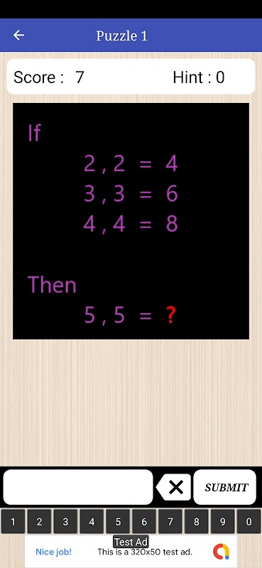 This math puzzle contains 5 levels and every single level have 15 mathematical puzzles. You can go to the next level only by solving each separate level. Every level have also fixed number of hints, so you can use it whenever you get stuck in any puzzle.