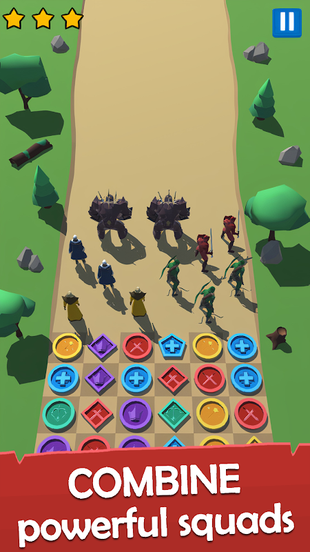 ترکیبی از پازل های Match-3 و گیم پلی مبارزات استراتژیک - ساده و گاه به گاه! با استفاده از ترکیب های تاکتیکی و استراتژی های مختلف پیروز شوید. با جمع آوری match-3 پازل ها را حرکت دهید تا ارتش قدرتمند خود را بزرگتر و قوی تر کنید. با تاکتیک های مختلف جالب برای ارتش قدرتمند خود بیایید.