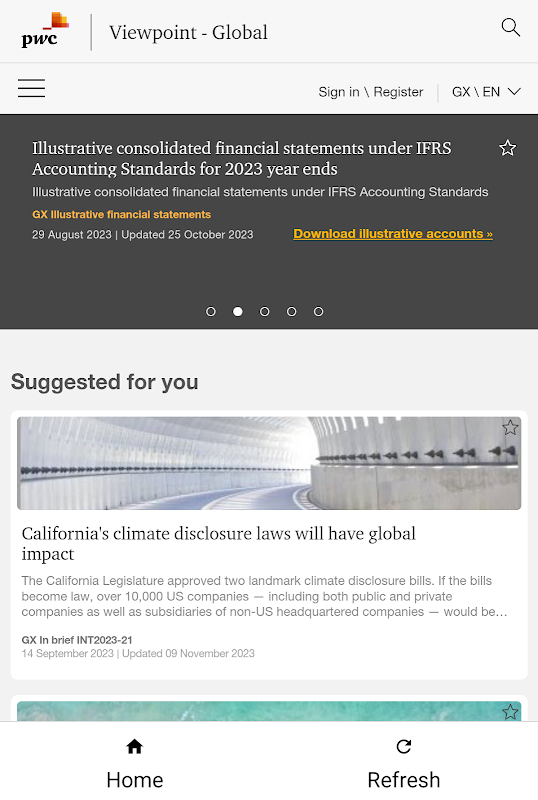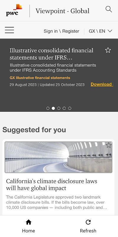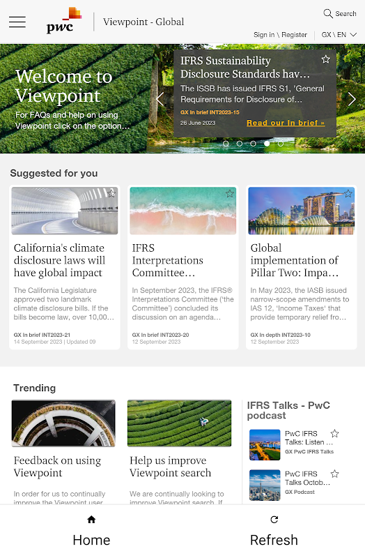 Viewpoint پلت فرم جهانی PwC برای دانش حسابداری و کسب و کار به موقع، مرتبط است. یک تجربه مدرن با بهروزرسانیهای همزمان، عملکرد جستجوی پیشبینیکننده، صفحات محتوای انتخابشده PwC و ویژگیهای اشتراکگذاری کاربرپسند، Viewpoint به شما کمک میکند تا در صورت نیاز، بینش و محتوای مورد نیاز خود را پیدا کنید.