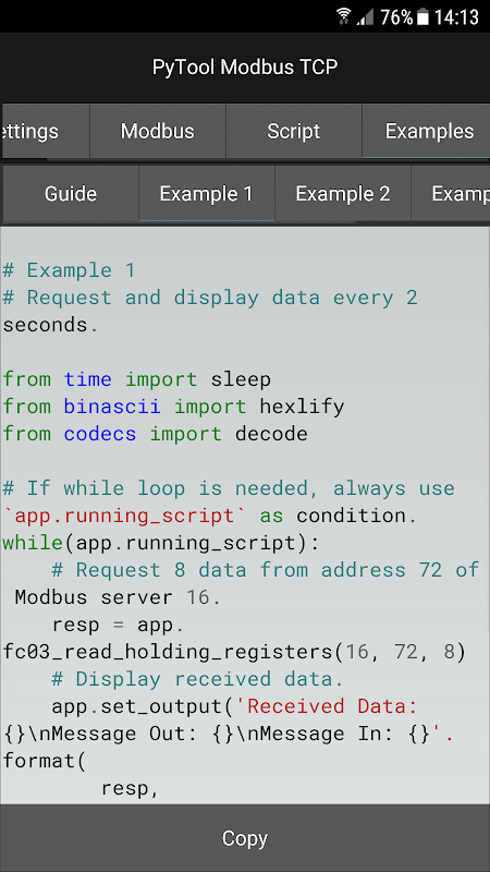 با قابلیت اجرای اسکریپت پایتون به صورت سفارشی ، PyTool Modbus TCP می تواند داده های دریافت شده را بخواند و تجزیه کند ، آنها را به روشی که می خواهید نمایش دهد و حتی در صورت نیاز مطابق آن عمل کند.