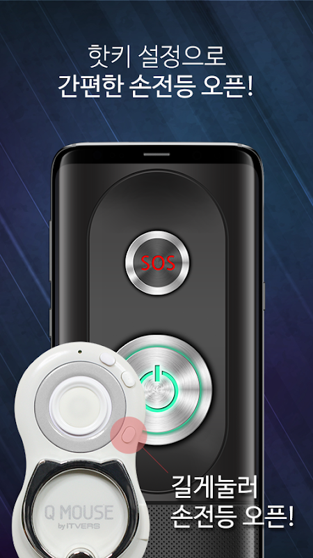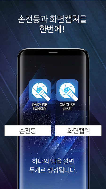 In addition, Q MOUSE SMART PATCH has a hotkey button. The hotkey works to open & run the apps right away by click. So we had to have the app to work for the hotkey. We researched the most useful functions for smartphone users and have developed the app, called Q MOUSE FUNKEY of flash light and screen shot.