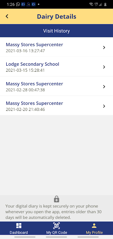 Point of entry app allowing businesses to digitally log visits using QR Codes