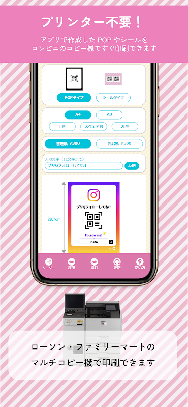 Pri-Q کدهای QR حاوی حساب های SNS مانند اینستاگرام ایجاد می کند، این برنامه ای است که به شما امکان می دهد به راحتی روی استیکرها و POP چاپ کنید.