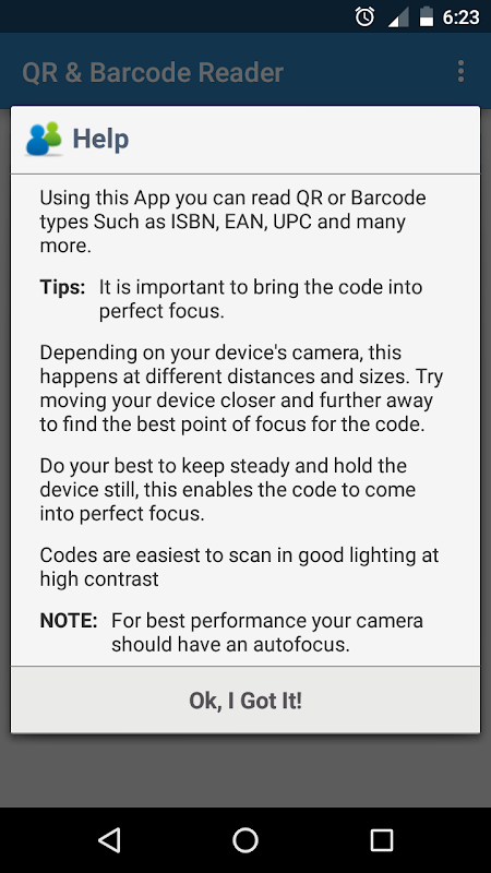 - QR & بارکد خوان QR می توانید تمام و یا بارکد انواع به طور گسترده ای استفاده می شود مانند ISBN، EAN، UPC و اسکن بسیاری دیگر.