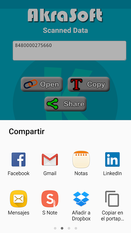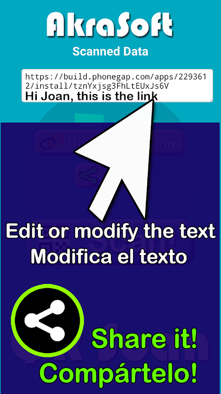 این اجازه می دهد شما را به خواندن کد، باز کردن لینک، کپی کد یا متن و به اشتراک گذاری آن را با هر پیام نصب و یا نرم افزار ایمیل. شما می توانید متن دلخواه به کد شما خواندن قبل از ارسال و یا به اشتراک گذاشتن آن اضافه کنید.