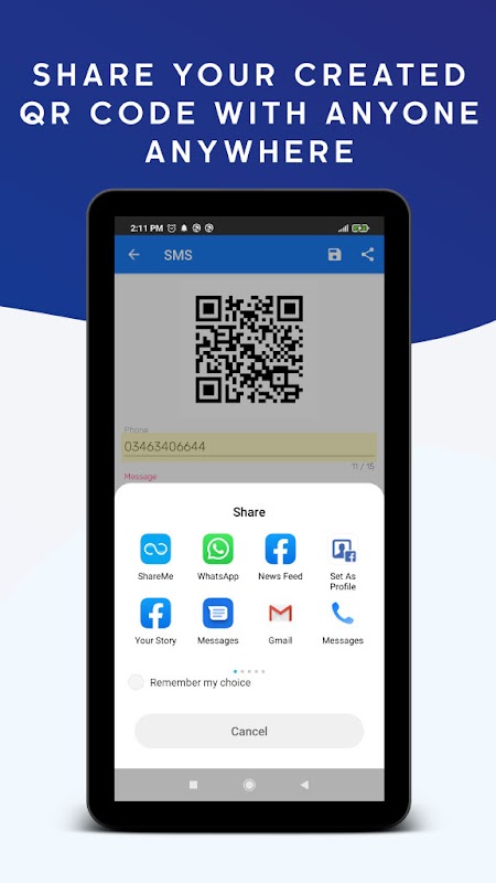 ویژگی مولد برنامه به شما این امکان را می دهد که به راحتی کدهای QR خود را ایجاد کنید. میتوانید انواع دادهها را انتخاب کنید، از جمله متن، URL، ایمیل، شماره تلفن و موارد دیگر. همچنین میتوانید طراحی کد QR خود را با طیف وسیعی از رنگها و گزینههای طرح سفارشی کنید.