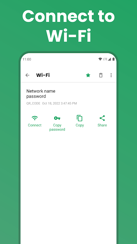 Once a scan is completed you can take multiple actions, like open websites, connect to a Wi-Fi network, copy a password, add a contact to Contacts app, find product info, share the info, etc.