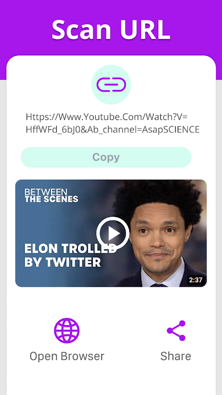 Scan را انتخاب کنید و دوربین را به سمت کد QR/بارکد بگیرید و کد QR را اسکن کنید