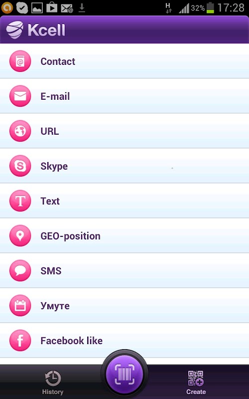 QR Kcell is a full feature, ad-free QR-Code reader/creator application, brought to you for free courtesy of Kcell. The app allows you to read QR-codes and barcodes (EAN13) in real time, and create your own QR-codes, share them via Facebook SMS, email etc.