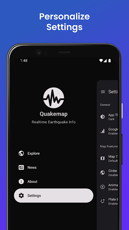 • هشدارهای زمین لرزه زنده - با داده های به روز از USGS، زلزله ها را در صورت وقوع ردیابی کنید.