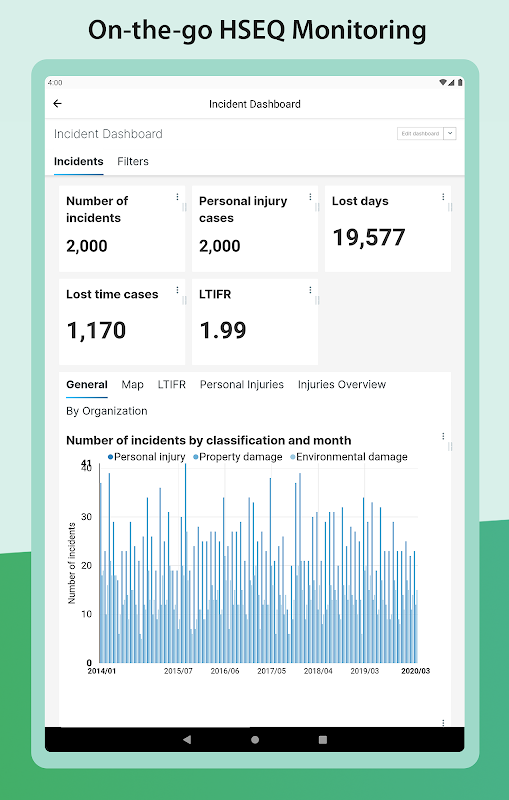 با استفاده از برنامه Quentic ، داده های HSEQ می توانند به سرعت و به آسانی منتقل شوند و به هر کارمند اجازه می دهد بدون هیچ تلاشی درگیر فرآیند گزارشگری شود. گزارش حوادث ناگوار ، حوادث خسارت دارایی ، حوادث و ارزیابی خطر را ارائه دهید. از لیست های چک حسابرسی مفید با لیست های سؤال استفاده کنید ، گزارش های بازرسی و پروتکل های لازم را برای بازرسی از سایت ایجاد کنید. اقدامات اصلاحی را آغاز کنید و تبادل اطلاعات فعال بین همه شرکت کنندگان را بهبود بخشید. شاخص ها و ارزیابی های مربوطه امکان نظارت سریع HSEQ را از طریق تلفن های هوشمند فراهم می کند.