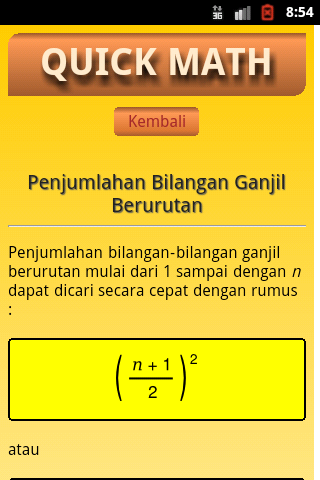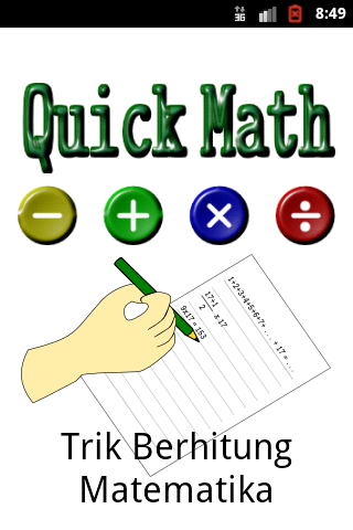ریاضی سریع شامل درس ابتدایی ریاضیات و حساب کلاهبرداری سریع. در درجه اول برای دانش آموزان از مدارس ابتدایی، مدارس راهنمایی و همچنین عموم مردم در نظر گرفته شده. شامل فرمول برای کمک به محاسبه سرعت و برخی از مفاهیم اساسی از ریاضیات، و همچنین پرسش و تمرین و یک ماشین حساب است که ادامه خواهد داد در هر نسخه اضافه شده است.