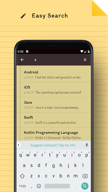 دفترچه یادداشت سریع اجازه می دهد تا یادداشت های خود را با تاریخ یا عنوان مرتب سازی کنید و آنها را به ترتیب نگه دارید. تابع جستجو به شما در پیدا کردن یادداشت های خاص کمک خواهد کرد اگر بسیاری از موارد یاد شده خود را ذخیره کرده اید.