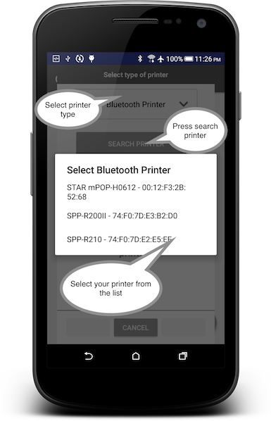 فهم برای چاپگر سریع 'افزار آندروید است که اجازه می دهد تا شما را به اضافه و پیکربندی چاپگر رسید (ESC چاپگر های سازگار) از طریق انواع اتصال های مختلف باشد:
