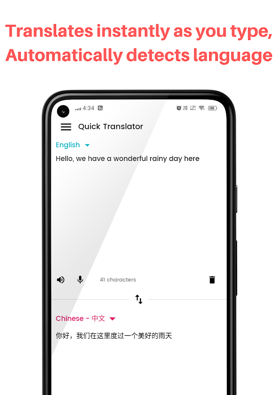 Quick translator مترجمی برای همه زبانها است که از هوش مصنوعی و الگوریتمهای مبتنی بر یادگیری ماشین برای ترجمه متن از یک زبان به زبان دیگر استفاده میکند. به طور خودکار زبان را از متن نوشته شده تشخیص می دهد و آن را به هر زبان دلخواه تبدیل می کند.