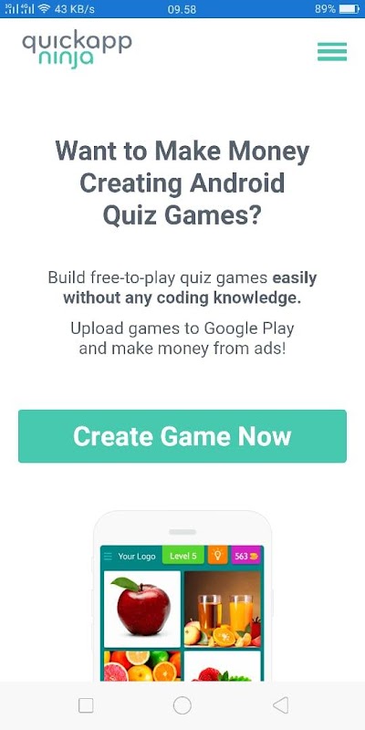 QuickAppNinja adalah pembuat aplikasi game dengan templat yang memungkinkan Anda membuat game kuis sendiri dengan mudah.