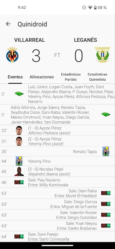 • نمرات زنده با ترکیب، گل ها، کارت ها، و آمار