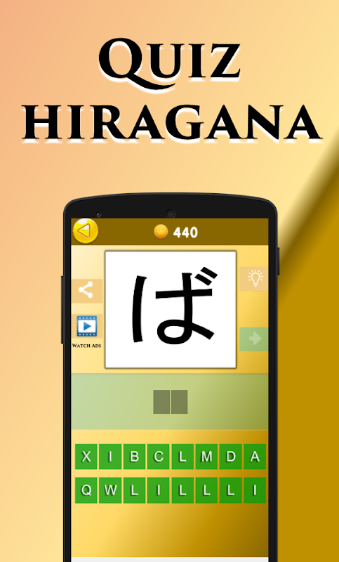 برای تکمیل هر سطح از بازی باید Hiragana را که در هر صفحه نمایش داده می شود حدس بزنید. از کاراکترهایی که در انتهای صفحه نمایش داده می شود استفاده کنید و Hiragana را کامل کنید.