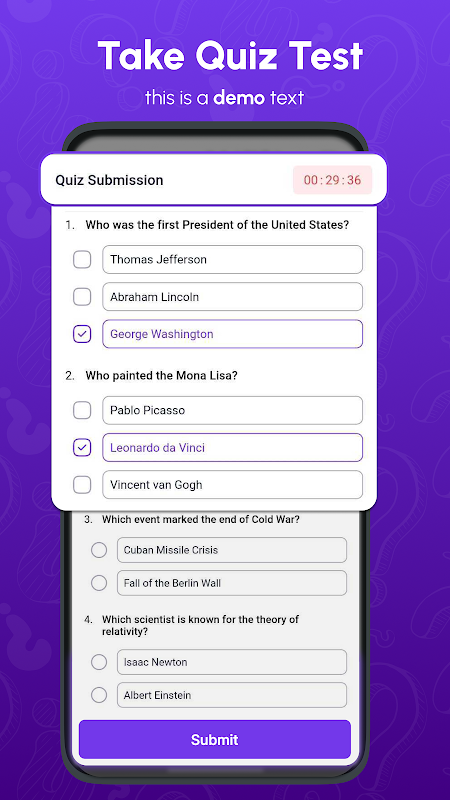 این برنامه Quiz Maker را نصب کنید زیرا این یک انتخاب عالی برای هر کسی است که به دنبال ایجاد آزمون های جذاب MCQ است. اگر معلم یا مربی هستید یا می خواهید یک مسابقه سرگرم کننده برای دوستان و خانواده بسازید، این برنامه سازنده آزمون همه چیز برای ایجاد یک تجربه مسابقه به یاد ماندنی دارد.
