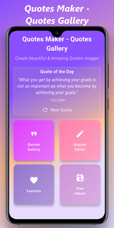 از همین امروز شروع به ایجاد تصاویر نقل قول زیبا کنید و دیگران را با کلمات حکیمانه الهام بخشید! برنامه Quote Maker ما به شما کمک می کند متن ساده را به محتوای بصری خیره کننده تبدیل کنید که توجه را جلب می کند و قلب ها را لمس می کند. نقل قول های تازه آن را به همراهی عالی برای رشد شخصی و بهبود رسانه های اجتماعی تبدیل می کند.