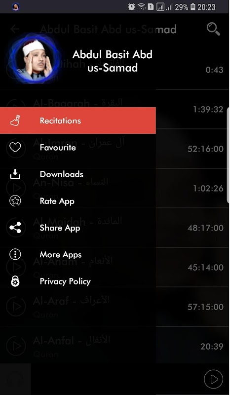 رمضان مبارک 2018 به همه برادران و خواهران مسلمان. با شما نماز گوش دادن MP3 قرآن در صدای زیبا از قاری عبدالباسط عبد الصمد ما. شما می توانید قرآن حالت آفلاین و آنلاین گوش دادن، شما فقط نیاز به دانلود تمام کوران سوره اولین بار تحت برنامه پس از آن شما می توانید صوتی قرآن از روی صفحه نمایش دانلود گوش دادن.