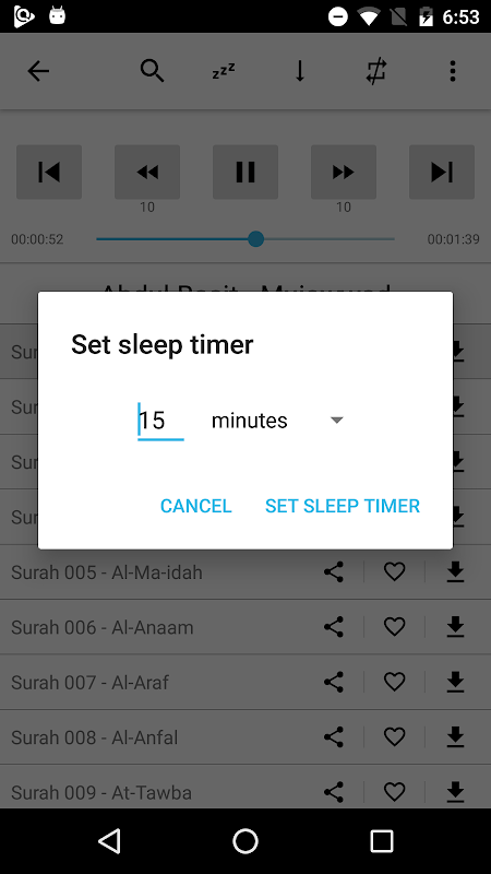 بیش از 550 قاری قرآن از سراسر جهان. تلاوت های صوتی در حفص، غیر حفص و ترجمه. شامل یک ویژگی منحصر به فرد لیست پخش سوره (فصل).