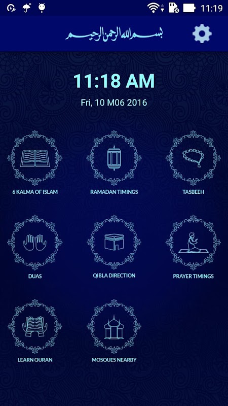This application has the most accurate prayer time. Quran e Pak also features the full Quran with urdu tanslations and audio recitations as well as a Qibla locator, a map of nearby mosques, etc…