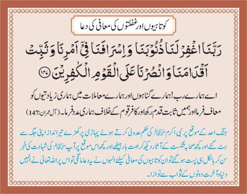 Selected Quranic Duas for different situations with their Urdu meanings also with description where and when this Dua is implemented.