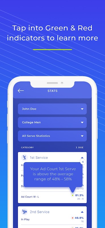تنها برنامه آماری تنیس در جهان را تجربه کنید که معیارهای مربوط به سن را برای مقایسه آمارهای شما ارائه می دهد.