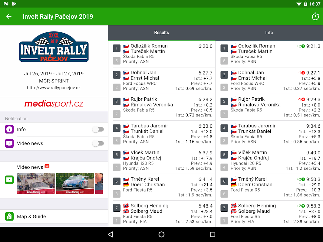 برنامه آنلاین منحصر به فرد تجمع برای نتایج مرحله LIVE WRC ، ERC ، مسابقات قهرمانی کشوری و موارد دیگر. فقط این نرم افزار نتایج زمان واقعی و آمار جامع در مورد تیم ها را فراهم می کند. هرگز هیچ نتیجه ای از تیم مورد علاقه خود را از دست ندهید!