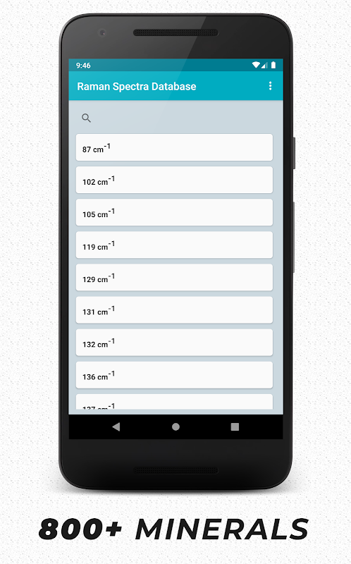 بانک اطلاعاتی طیف رامان یک برنامه اندرویدی با بیش از 800 ورودی مواد معدنی است که کاملاً قابل جستجو است. بانک اطلاعاتی طیف رامان با باند اصلی (بازدید کنندگان) رامان ، نام مواد معدنی ، فرمولهای شیمیایی برای کلیه مواد معدنی. جستجوی قوی ترین باند (های) رامان و / یا نام معدنی.