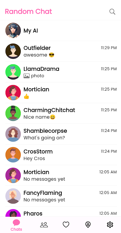 گپ تصادفی 24/7 در دسترس است، بنابراین می توانید هر زمان و هر کجا که بخواهید با افراد غریبه چت کنید.