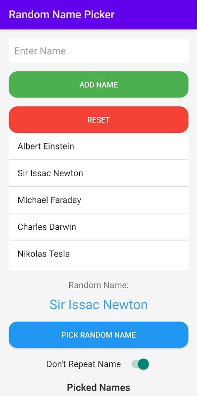 برنامه Random Name Picker به شما کمک می کند به راحتی نامی را از لیست اضافه شده انتخاب کنید.