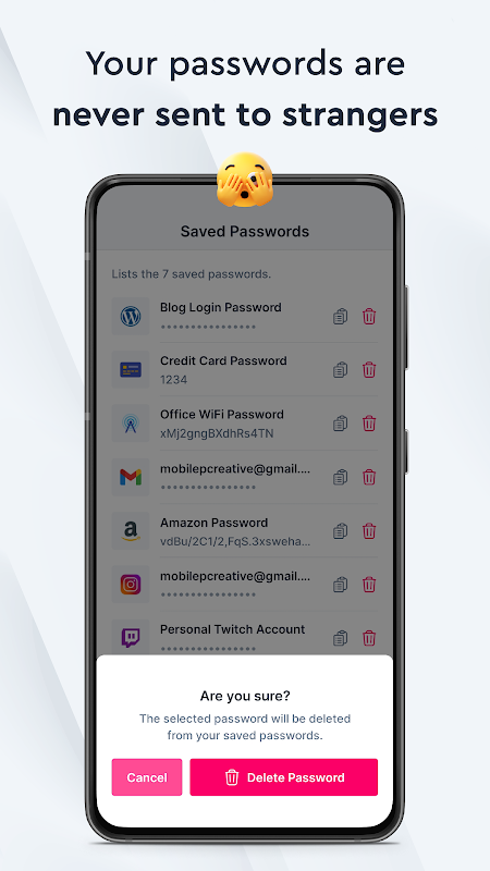 🫣 رمزهای عبور شما هرگز به اینترنت یا افراد غریبه ارسال نمی شود.