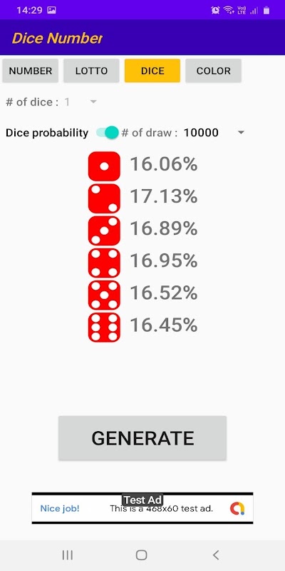 تاس - ایجاد تاس (های) قرعه کشی و شانس تاس. کاربر می تواند تعداد تاس های قرعه کشی را انتخاب کند و کاربر می تواند تعداد قرعه کشی را برای شانس تاس انتخاب کند.