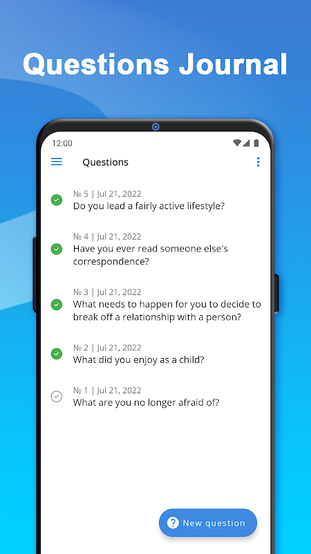 یک سوال در روز این مجله بهترین برنامه برای خودشناسی و خودشناسی است. سوالات عمیق آفلاین به شما کمک می کند خودتان را بشناسید و در صورت لزوم، شروع به تغییر کنید. سوالات تصادفی در انتظار شماست.