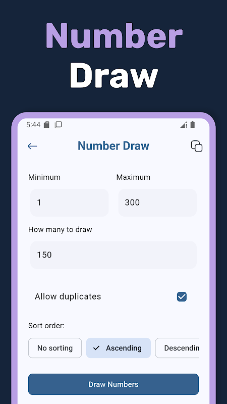 🎲 Number Generator: حداقل / حداکثر دامنه و تعداد را تنظیم کنید، از تکرارها و مرتب سازی پشتیبانی می کند
