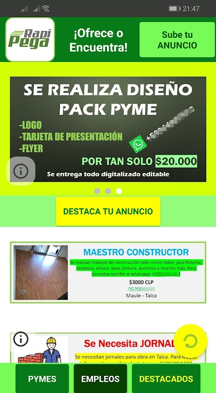 RapiPega, estamos a un click de ofrecer o encontrar lo que necesitas. En esta App puedes crear anuncios totalmente gratis para incrementar la visibilidad de tu PYME o emprendimiento. También puedes encontrar algún servicio profesional que estes necesitando. Esperamos que te unas y formes parte de la familia de RapiPega ¡Saludos!