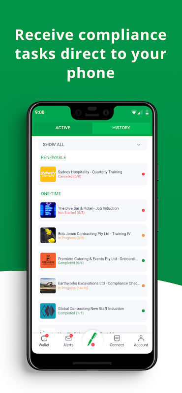 تصویب حتی قبل از ورود به سایت ، تکمیل فرمهای آموزش و انطباق را مستقیماً از برنامه ساده می کند. به سادگی از کارفرمای خود بخواهید که شرایط انطباق خود را از طریق حساب Ratify Enterprise به دستگاه شما بفرستد و در عرض چند دقیقه آماده است.