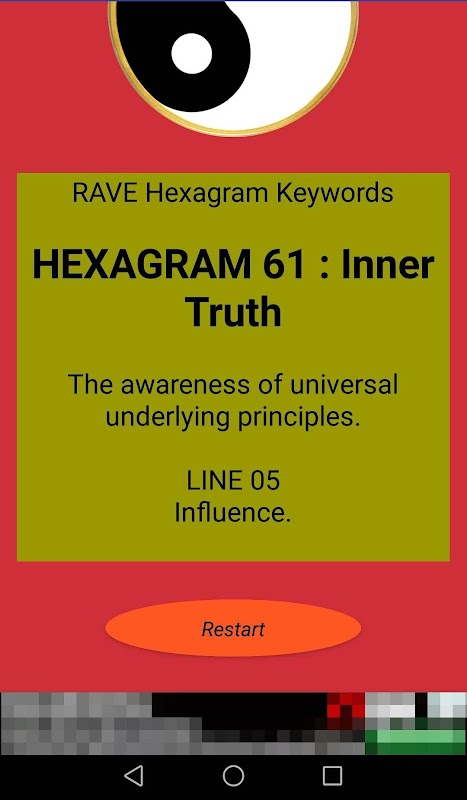 A simple, easy and fun way to learn/memorise RAVE Hexagrams' keynotes and 384 lines' keywords. This APP will randomly show a RAVE Hexagram keynote and a line keyword each click. You can re-start any time to show a new Hexagram keynote and keyword.